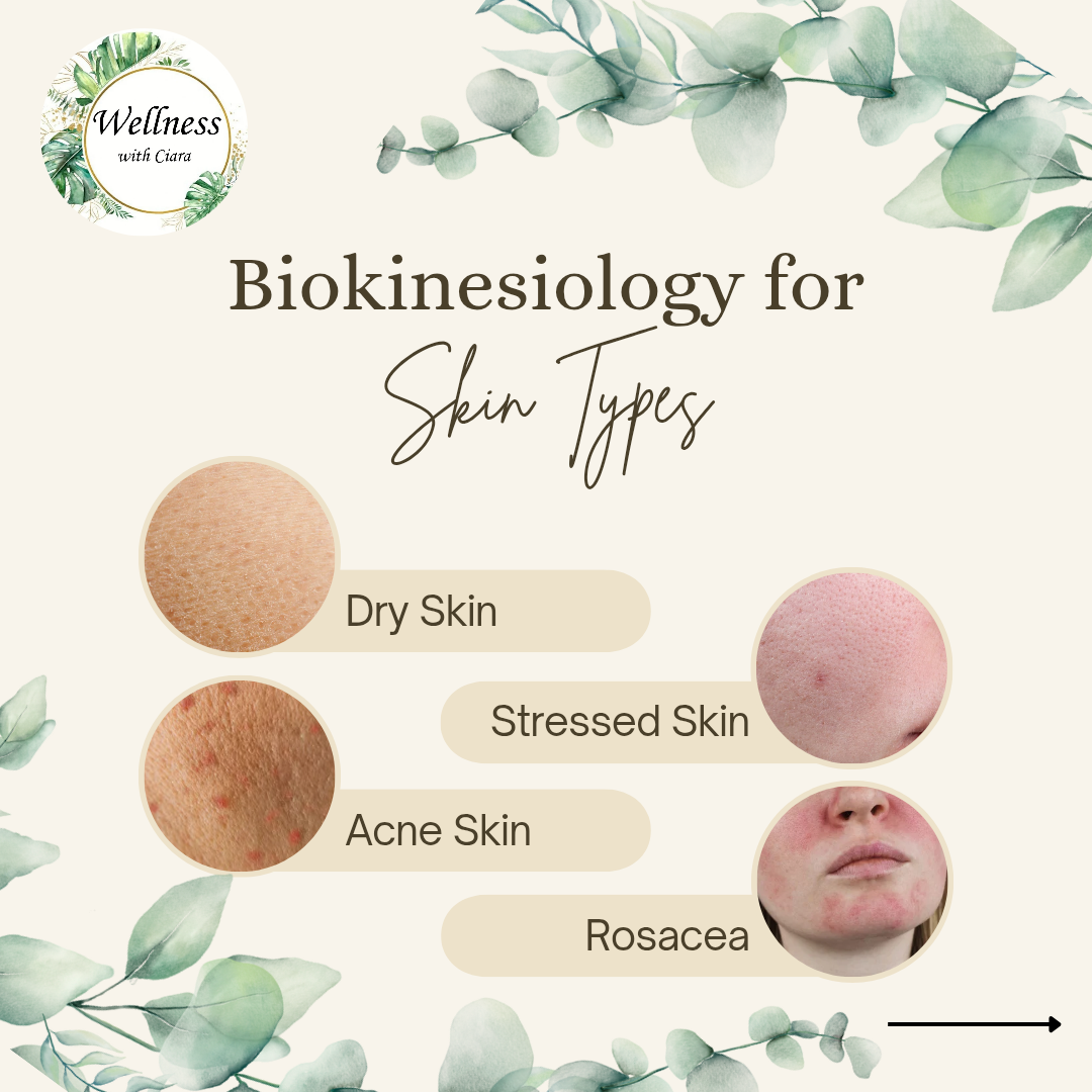 Biokinesiology for skin problems and irritations. Our skin is a big indication of what is going on in our body. If we are experiencing irritations and problems like dry skin, acne, stressed skin, rosacea, psoriasis, eczema or more and you're looking to get the the cause of the problem, Biokinesiology is a great treatment to start with.