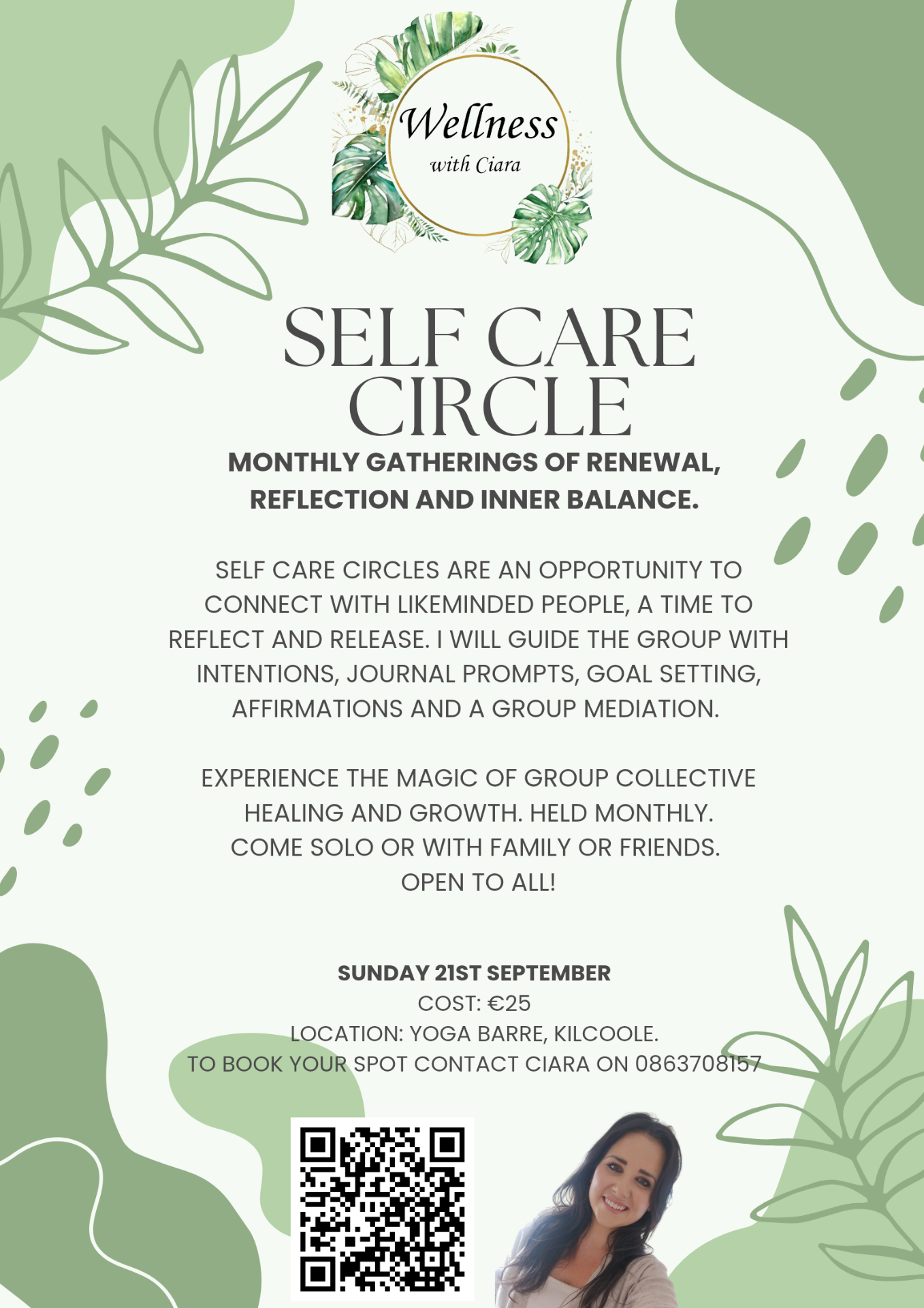 Sunday 21st September at 11am, join me for an Self Care Circle, it's an opportunity to join like minded people, a time of renewal, reflection and inner balance! A sacred space to reflect and release. I will guide the group with intentions, journal prompts, goal setting, affirmations and a guided group meditation. I will host Empowering Circles once a month, in the Yoga Barre, Kilcoole and the cost is €25.